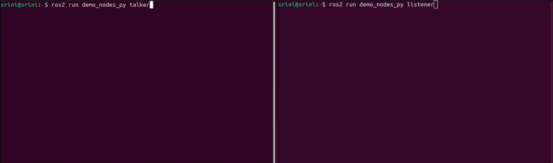 These programs are part of the demo_nodes_py package, which is included with your ROS2 installation. Follow these steps to test them.